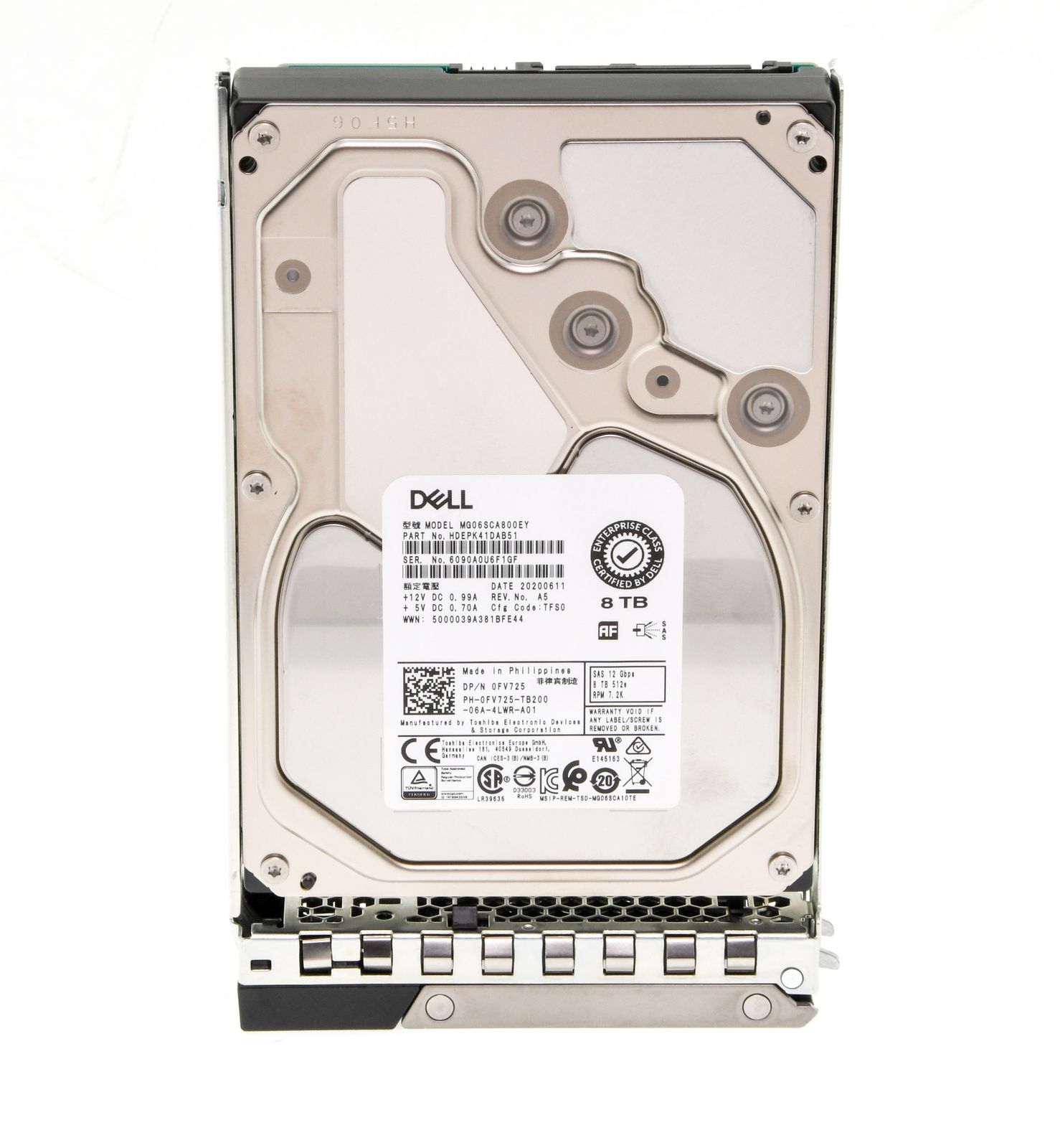 - DELL 8TB 12G 7.2K SAS (512e) 3.5" LFF Festplatte / Hard Disk mit 14G Carrier - 0FV725 / FV725