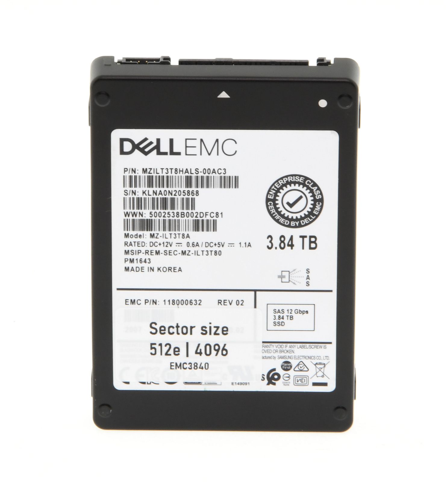 DELL EMC 3.84TB 12G SAS Read Intensive SSD 2.5" SFF Solid State Disk (PM1643) - 118000632