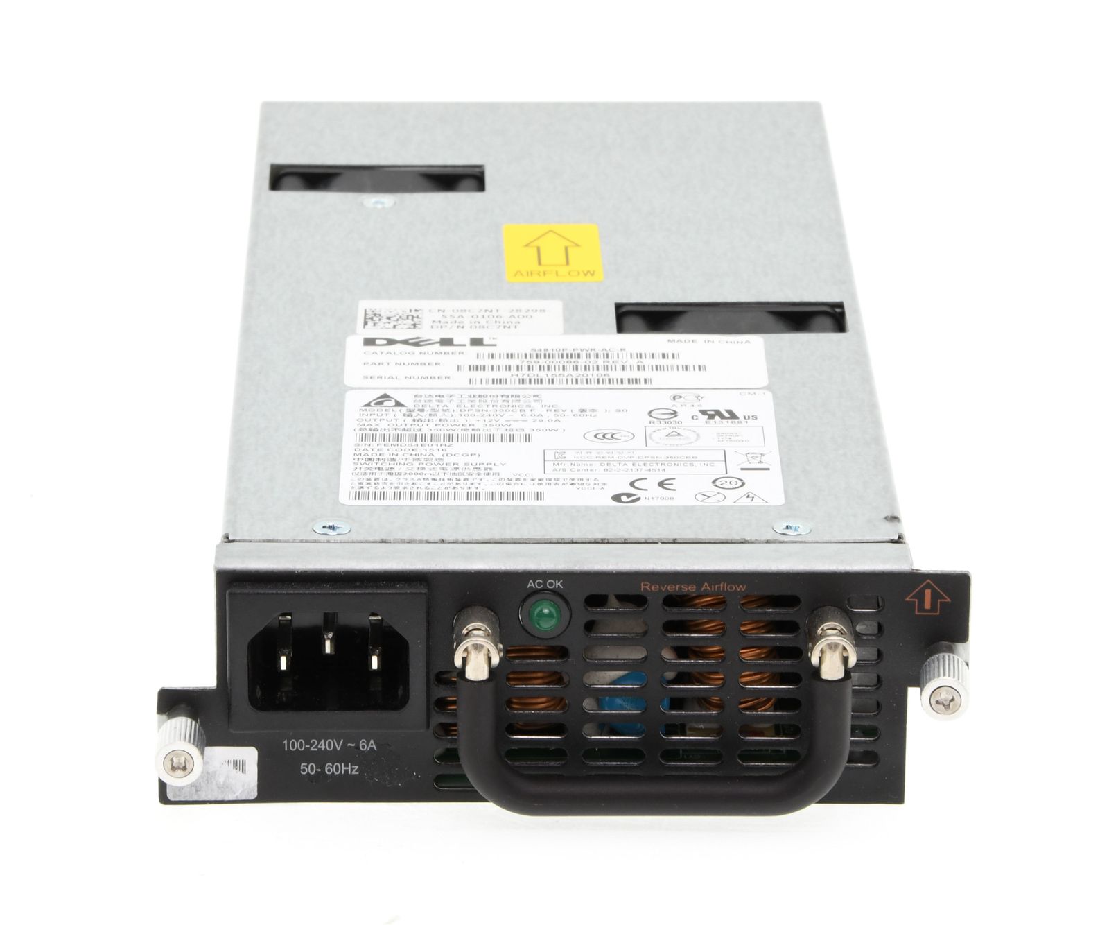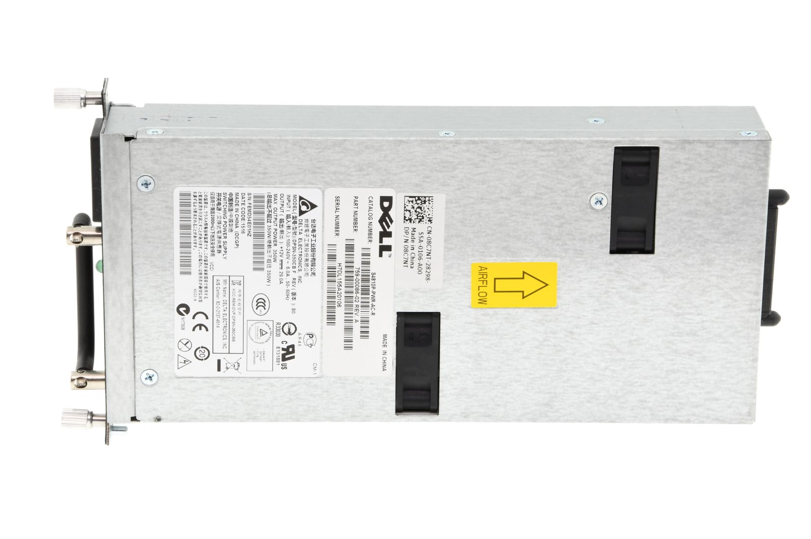 DELL 350 Watt Hot Swap Netzteil / Hot-Plug Power Supply - Force10 S4810P Switch - 08C7NT / 8C7NT