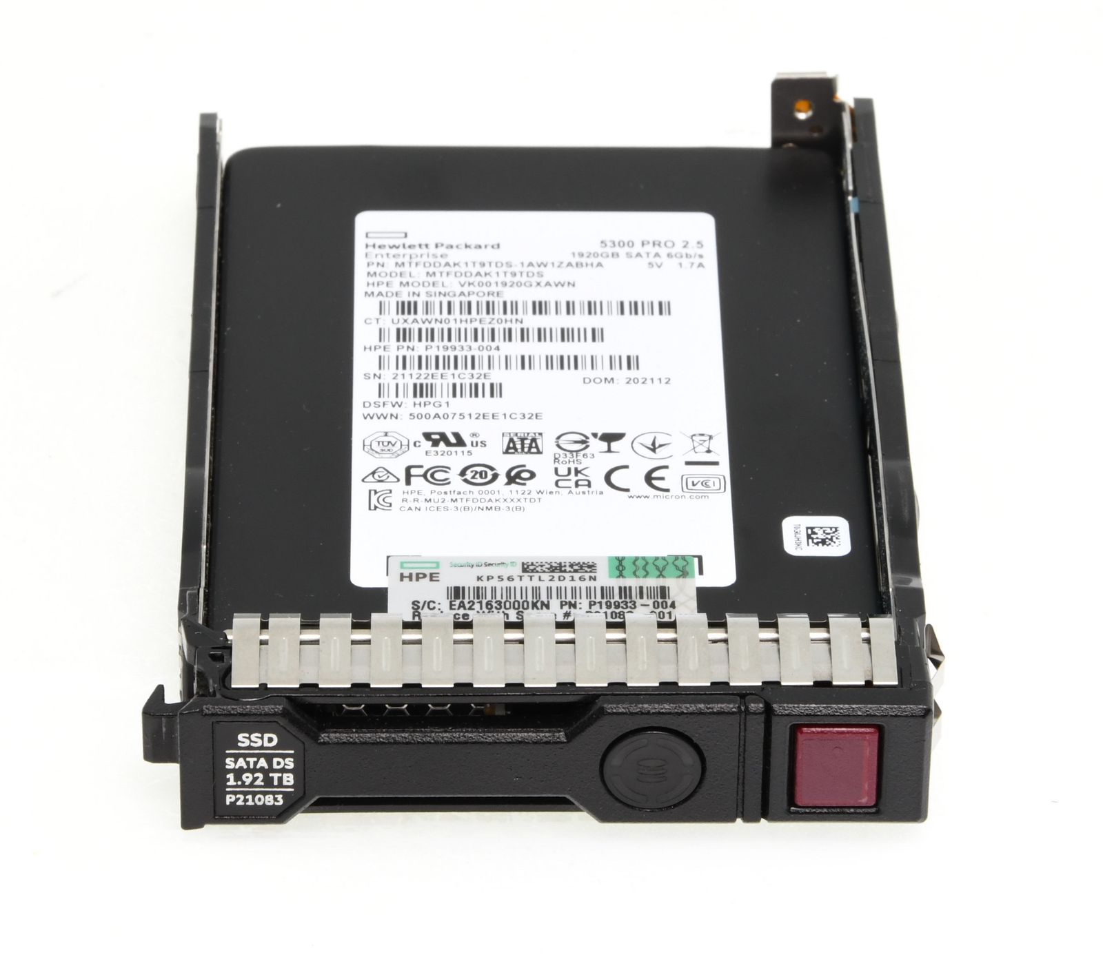 - HPE 1.92TB 6G SATA RI SSD 2.5" SFF Solid State Disk (5300P) mit Smart Carrier - P21083-001 / P19941-B21
