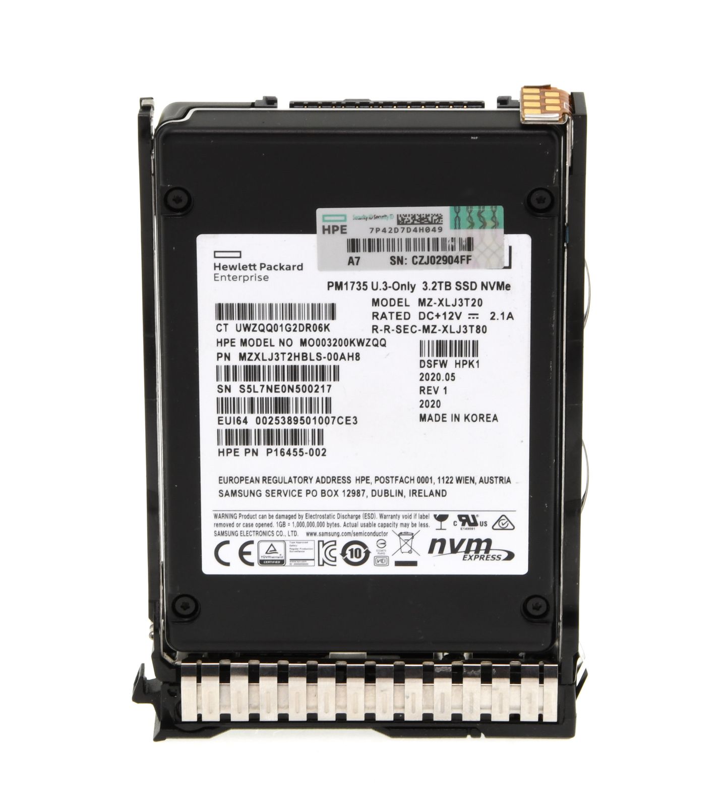 - HPE 3.2TB U.3-Only PCIe Gen4 HP MU SSD 2.5" SFF Solid State Disk (PM1735) with SCN-Carrier - P20738-001 / P16499-B21
