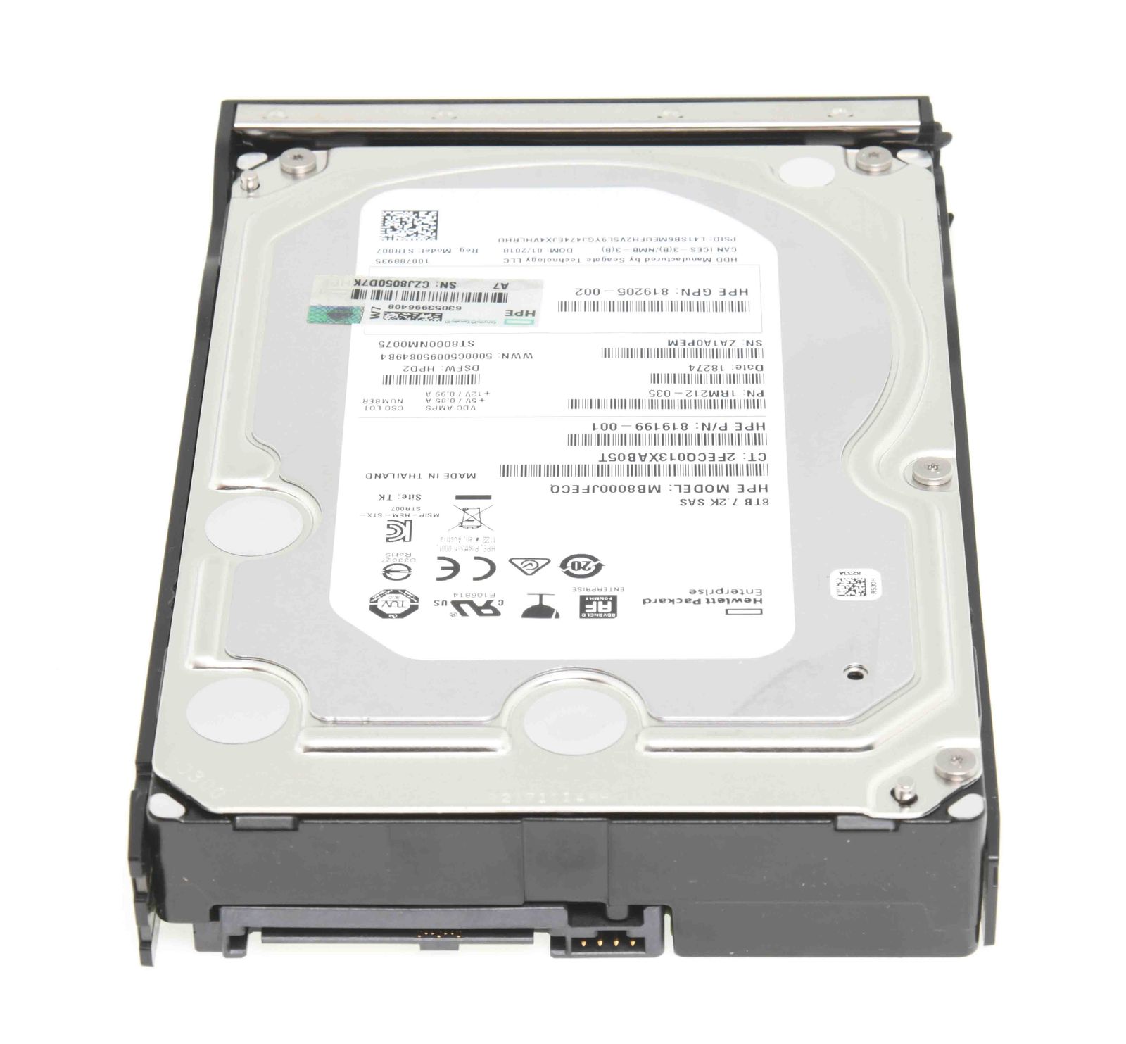 - HPE 8TB 12G 7.2K SAS (512e) 3.5" LFF Festplatte / Hard Disk with Low Profile Carrier - 834132-001 / 834031R-B21