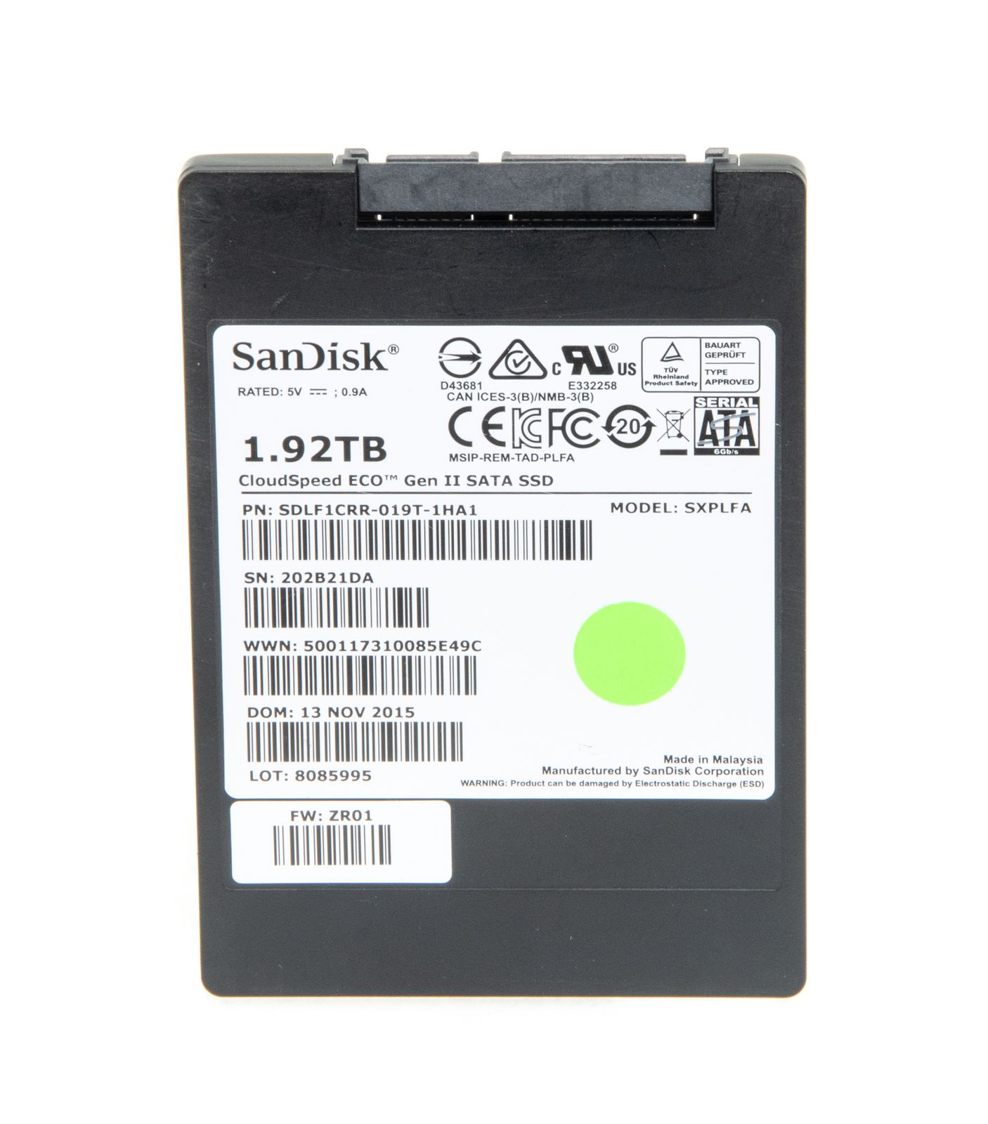 - SanDisk CloudSpeed Gen II Eco 1.92TB 6G SATA RI (0.6DWPD) SSD 2.5" SFF Solid State Disk - SDLF1CRR-019T-1HA1